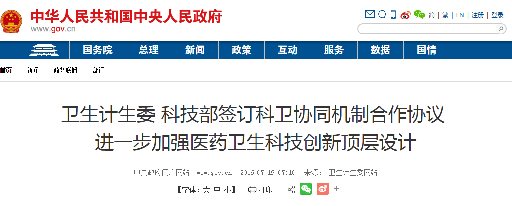 近日,國家衛生計生委和科技部簽訂合作協議,建立科衛協同機制,進一步加強醫藥衛生領域科技創新的頂層設計,協同謀劃并組織實施重大科技項目和工程,推進醫藥衛生領域科技創新體系建設及各項科技創新工作。這是兩部門貫徹落實全國科技創新大會的一項重要舉措…