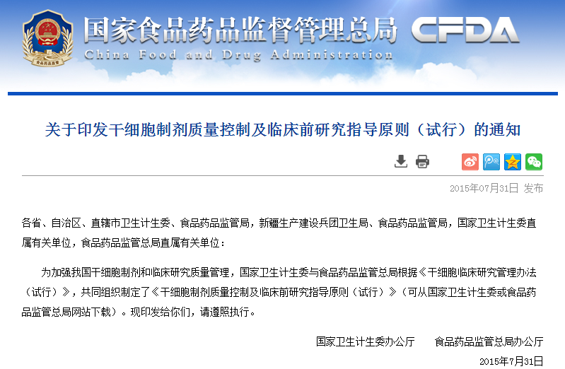 各省、自治區、直轄市衛生計生委、食品藥品監管局,新疆生產建設兵團衛生局、食品藥品監管局,國家衛生計生委直屬有關單位,食品藥品監管總局直屬有關單位:為加強我國干細胞制劑和臨床研究質量管理,國家衛生計生委與食品藥品監管總局根據《干細胞臨床研究管…